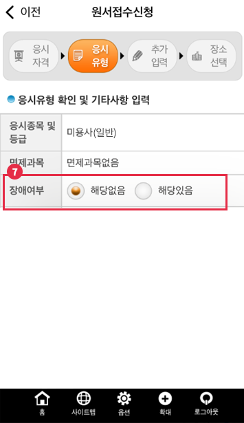 다음 버튼 누른 후 장애 여부 선택하기!