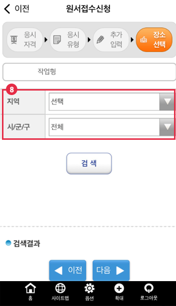 지역 시/군/구 선택 후 ‘검색’